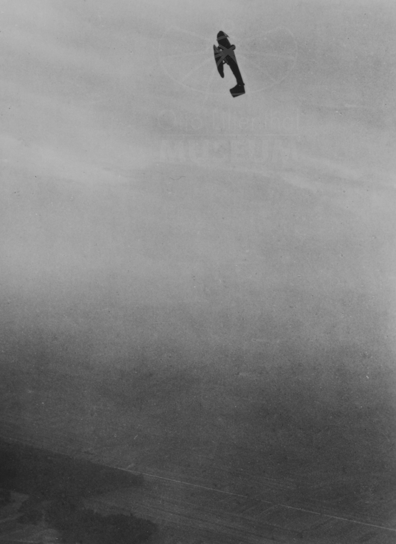 Unterricht im Kunstflug: Segelflugzeug im Looping (freigegeben durch RLM)