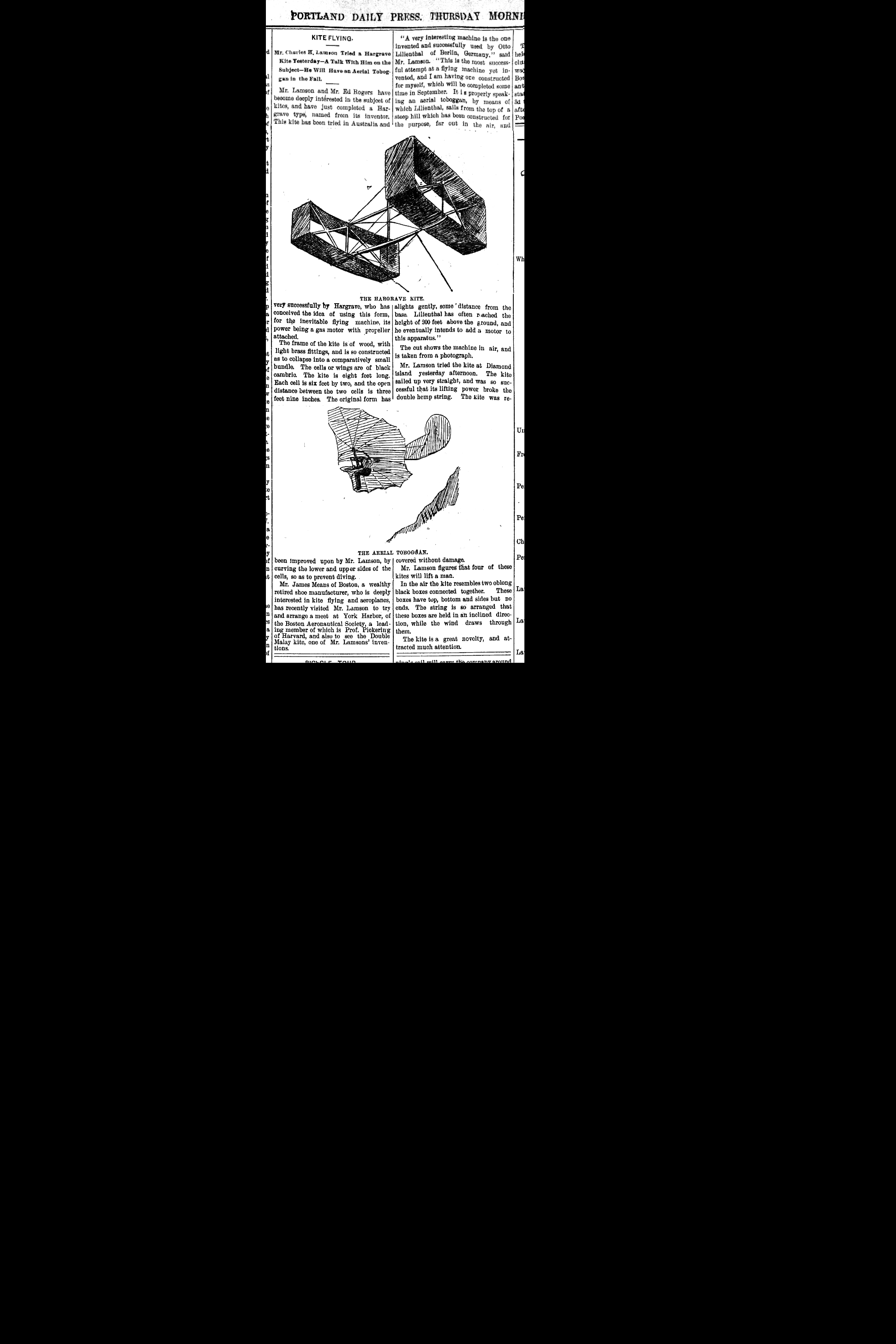 beschreibt Versuche von Charles H. Lamson mit Drachen und mit seinem Lilienthal-Nachbau.