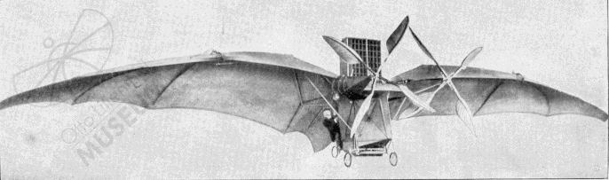 16. Sonderheft der "Woche" (E364 id14590) S.22f: "Auf der Pariser Weltausstellung im Jahre 1900konnte man in der großen Halle einen eigenartigen Flieger sehen, der wie eine große Fledermaus oben an der Decke hing. Mit dieser Flugmaschine hatte in den Jahren zuvor der französische Aviatiker Ader mit Unterstützung des Kriegsministeriums Versuche angestellt, die auch bis zu einem gewissen Grade erfolgreich verlaufen waren. [...] zusammenfaltbare Flächen [...] schon am 9. Oktober 1890 mit seiner Flugmaschine einen freien Flug ausgeführt haben soll."