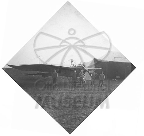 Deutsche Fliegertruppe mit Rumpler-Taube im Feldlager