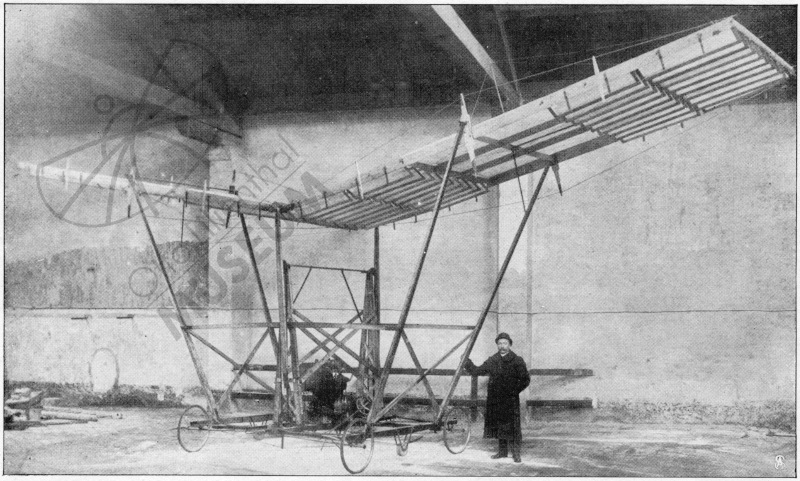 "J. COLLOMB in Lyon hat einen Flügelflieger gebaut, dessen Flügel wieder einmal die alte Jalousieklappenidee verwirklichen. Beim Niederschlagen schließen sich die Klappen, beim Emporgehen öffnen sie sich und lassen die Luft durch. Der Grad der Neigung der Jalousie- lamellen soll sich selbst automatisch bestimmen. Die Flügel, die 6 m lang und 3 m breit sind, sollen 200 Schläge in der Minute ausführen können. Der Motor, welcher eingebaut wird, ist ein Vierzigpferder. — Wie soeben gemeldet wird, hat Collomb sein Leben durch Selbstmord geendigt. Da.« Motiv für diese Verzweiflungstat waren finanzielle Sorgen und Enttäuschungen." (aus Wiener Luftschifferzeitung VII. Jg., 1908 Nr.5 ?)