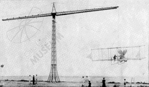Kapitän Ferber versucht seinen Drachenflieger an einem Gerüst mit drehbaren Trägern.