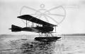 Ernst Ph. Stoeffler im kleinen Kurvenflug auf Albatros Doppeldecker