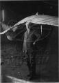 Paul Beylich mit von ihm gebautem Normalsegelapparat Otto Lilienthals