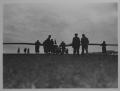 Gustav Lilienthal mit Schülern an seinem "großen Vogel" (Flügelschlagapparat)