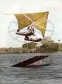Aquarell: Otto Lilienthal im Flug mit Doppeldecker am Fliegeberg
