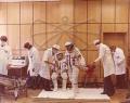 Sigmund Jähn unde Waleri Bykowski im Ankleideraum Kosmodrom Baikonur