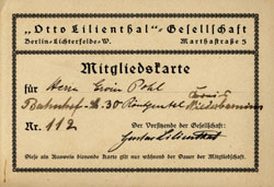 Archiv L1604: Mitgliedskarte für E. Pohl für "Otto Lilienthal" Gesellschaft