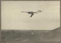 Otto Lilienthal mit Flugapparat "Modell 93" (Maihöhe-Rhinow-Apparat) im Flug in den Rhinower Bergen