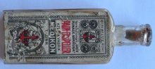 Glasflsche mit Original-Etikett und Beschriftung im Glas.