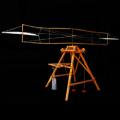 Windmesser, wie in Lilienthals Buch "Der Vogelflug ..." beschrieben: An einem 10 m hoher Turm sind übereinander Flügelflächen angeordnet, um die durchschnittliche Windrichtung zu ermitteln. mit einfacher Aufzeichnungsmechanik. Entsprechende Messkurven sind im Buch veröffentlicht. Teilreplik |