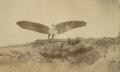 Flug Lilienthals, noch ohne später typisches Fliegerkostüm |